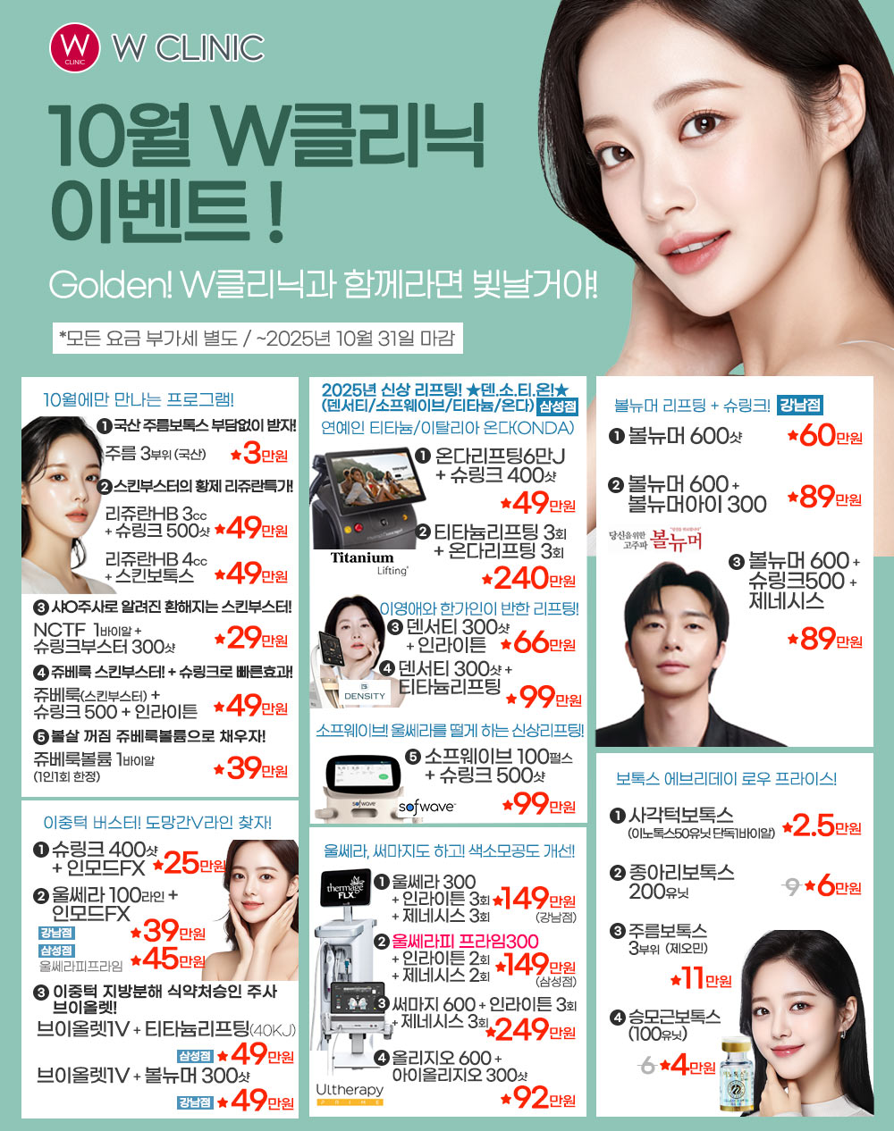 레이저, 필러, 스컬트라,리프팅 분야에 경험이 많고 실력이 뛰어난 W클리닉 의료진